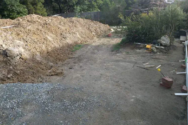 The process of excavating for the pool generated a lot of dirt. Having it removed would be extremely costly so we decided to use it to partially level the yard below the pool. This area is around 25 meters wide and 10 meters deep. The elevation difference from one side to the other is around 1.5 meters and from top to bottom around 1 meter.